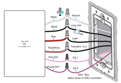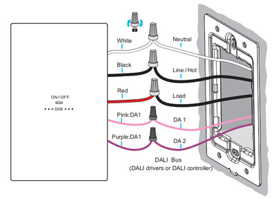 Note2:Connect the AC input live wire (L) of the DALI driver to the dimmer's Load wire(Red) .