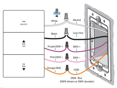 The DMX dimmer is designed with a white plastic shell that can adapt to most home decoration styles on the market. It is equipped with a three-button button to meet users' various needs for lamp dimming and provide a professional-level lighting control experience. It has a 5-year warranty.