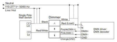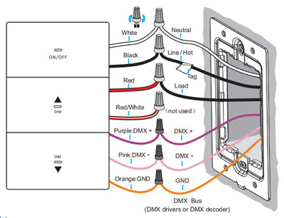 Note2:Connect the AC input live wire (L) of the DALI driver to the dimmer's Load wire(Red) .