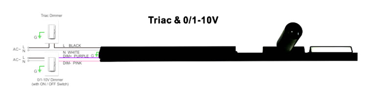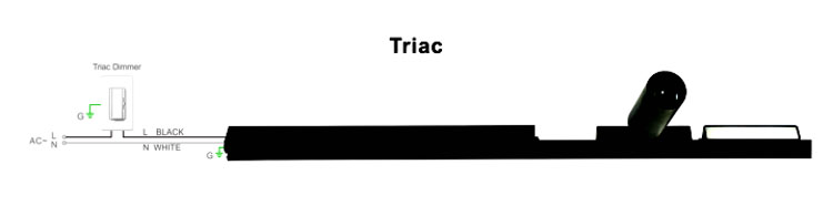 The Pulse-Width Modulation (PWM) of output voltage can be adjusted through input terminal of the AC phase line(L) by connection A phase /Triac dimmer or lighting system.
