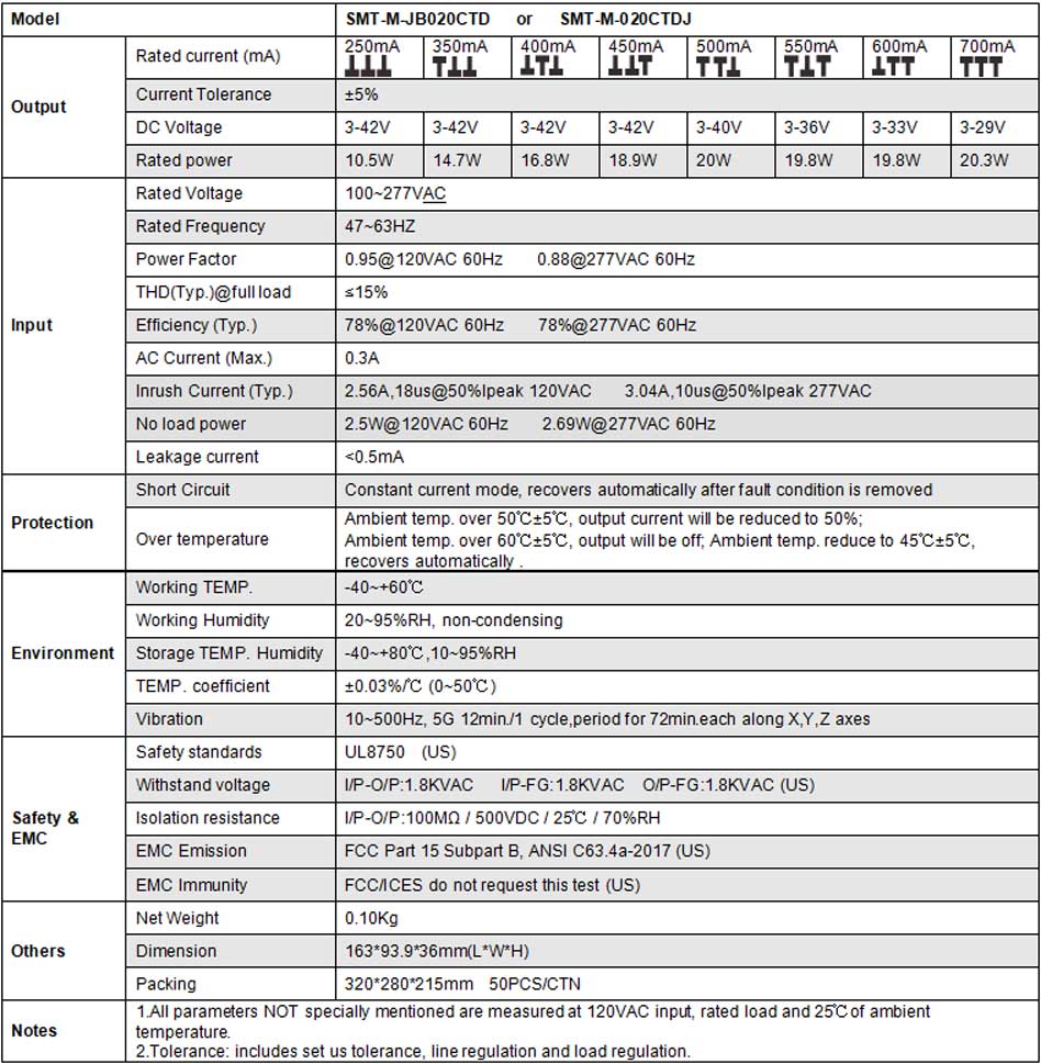 Model: SMT-M-020CTD Input Voltage: 100-277vac