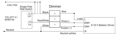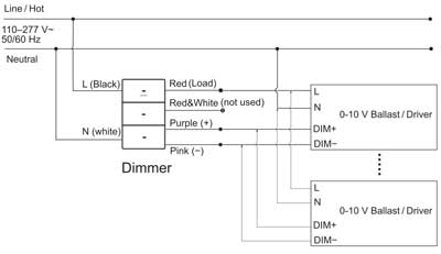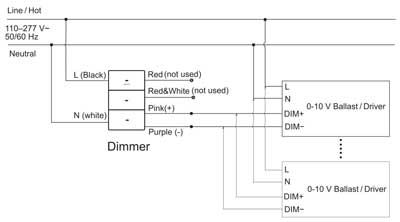 Note: The dimmer and 0-10V Ballast/driver are independently connected to the input power (AC mains)