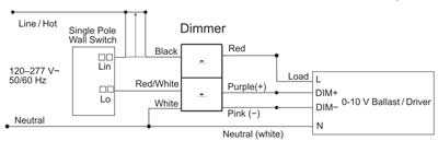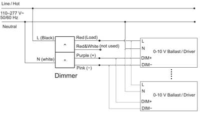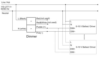 Note: The dimmer and 0-10V Ballast/driver are independently connected to the input power (AC mains)