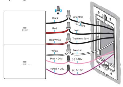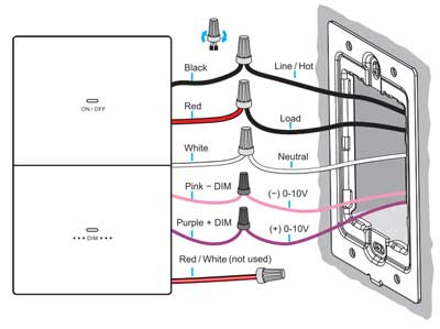 Note:Connect the AC input live wire (L) of the 0-10V Ballast/driver to the dimmer's Load wire(Red).