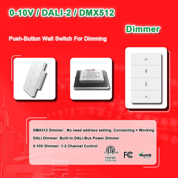This DMX Push Button Wall Switch for Dimming features an address-free design. Neither the dimmer, DMX driver, or decoder require address setting or parameter matching. Simply connect to AC power and you're ready to go, ensuring instant installation.