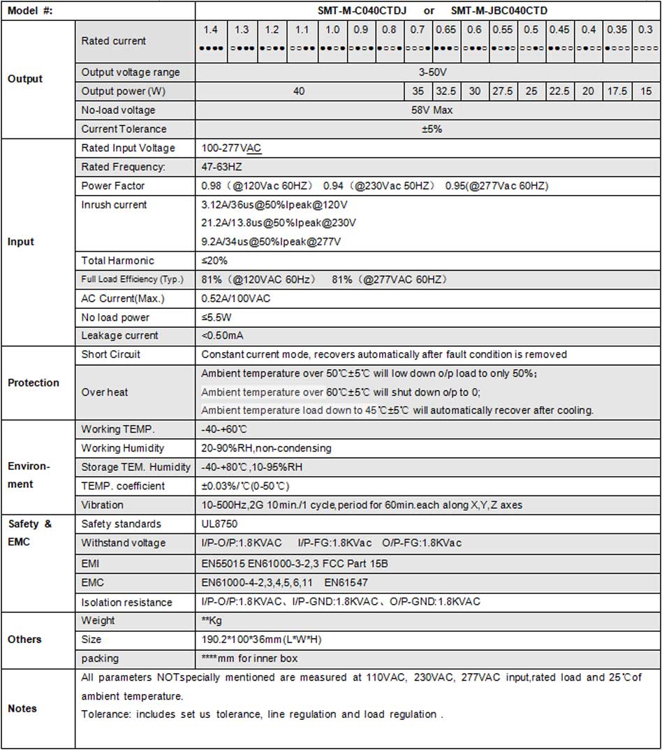 Model: SMT-M-040CTD Input Voltage: 100-277vac