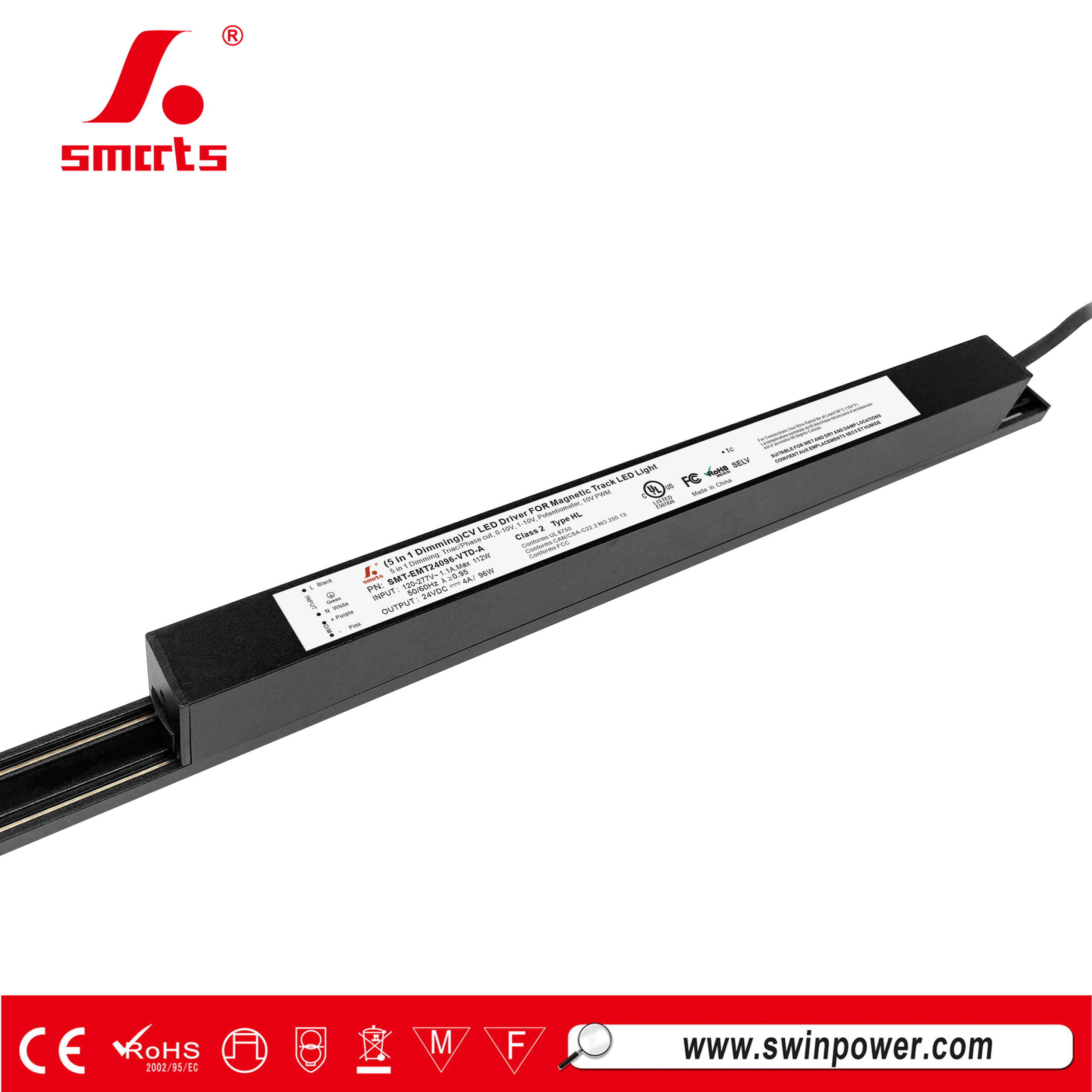 This 5-in-1 dimmable LED power supply features constant voltage operation and is compatible with most magnetic track lights on the market, ensuring a seamless fit and maintaining a clean, aesthetically pleasing appearance. It is UL certified and primarily sold in North America.